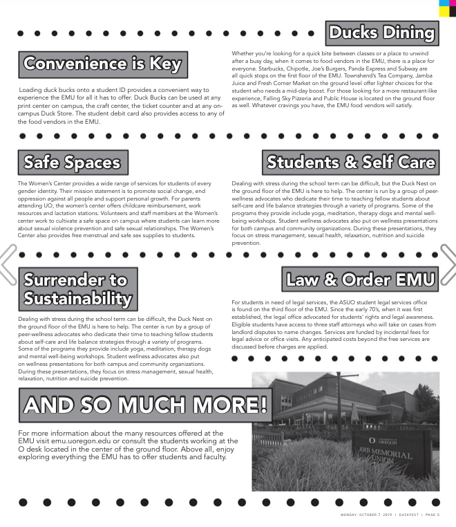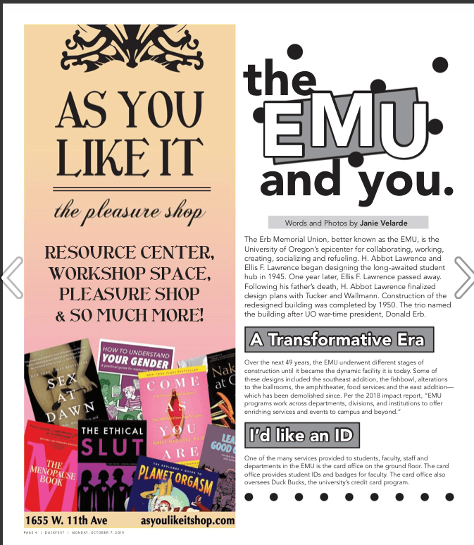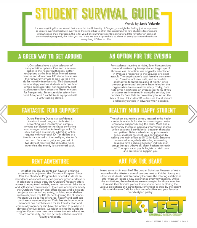 Duck Living is a student-run publication, affiliated Emerald Media Group, at University of Oregon.